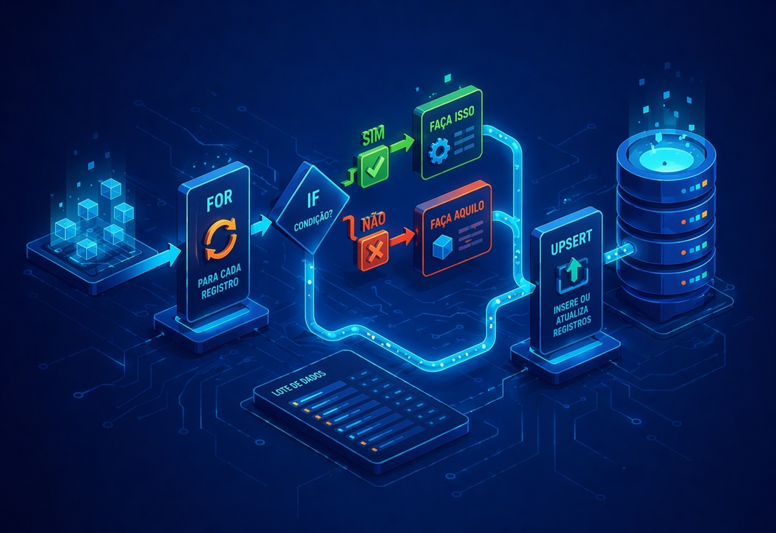 Fluxos com DecisãoDados em EscalaAutomação RealFOR, IF e upsert — processe lotes com lógica condicional por registro